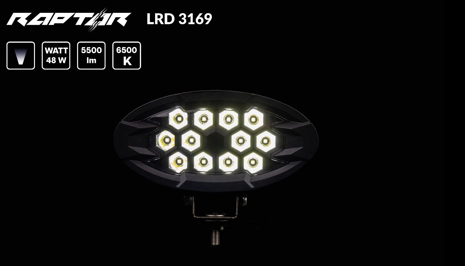 LRD 3169 RAPTOR es una luz de trabajo LED profesional concebida para usuarios que exigen el máximo rendimiento, durabilidad y seguridad. Será un complemento perfecto de cualquier entorno en el que se necesite iluminación fiable sin concesiones: en la agricultura, la construcción, el transporte pesado, los vehículos especializados y la maquinaria de campo.