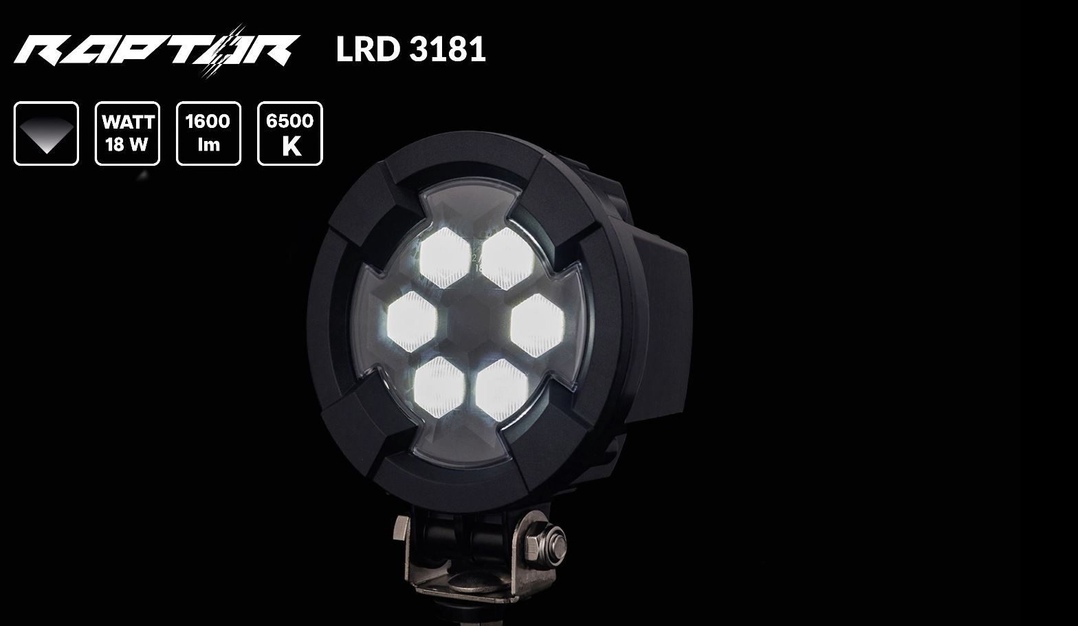 RAPTOR LRD 3181 es una lámpara eficiente, creada para trabajar en condiciones exigentes de campo y climáticas. Equipada con 6 diodos LED con una potencia total de 18 W, genera un flujo luminoso de 1600 lm con una temperatura de color de 6500 K, lo que proporciona una iluminación clara y definida, facilitando el trabajo después del anochecer.