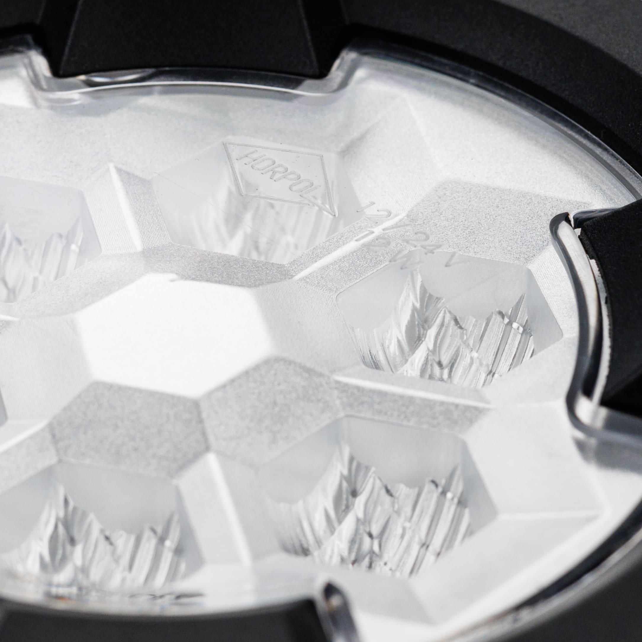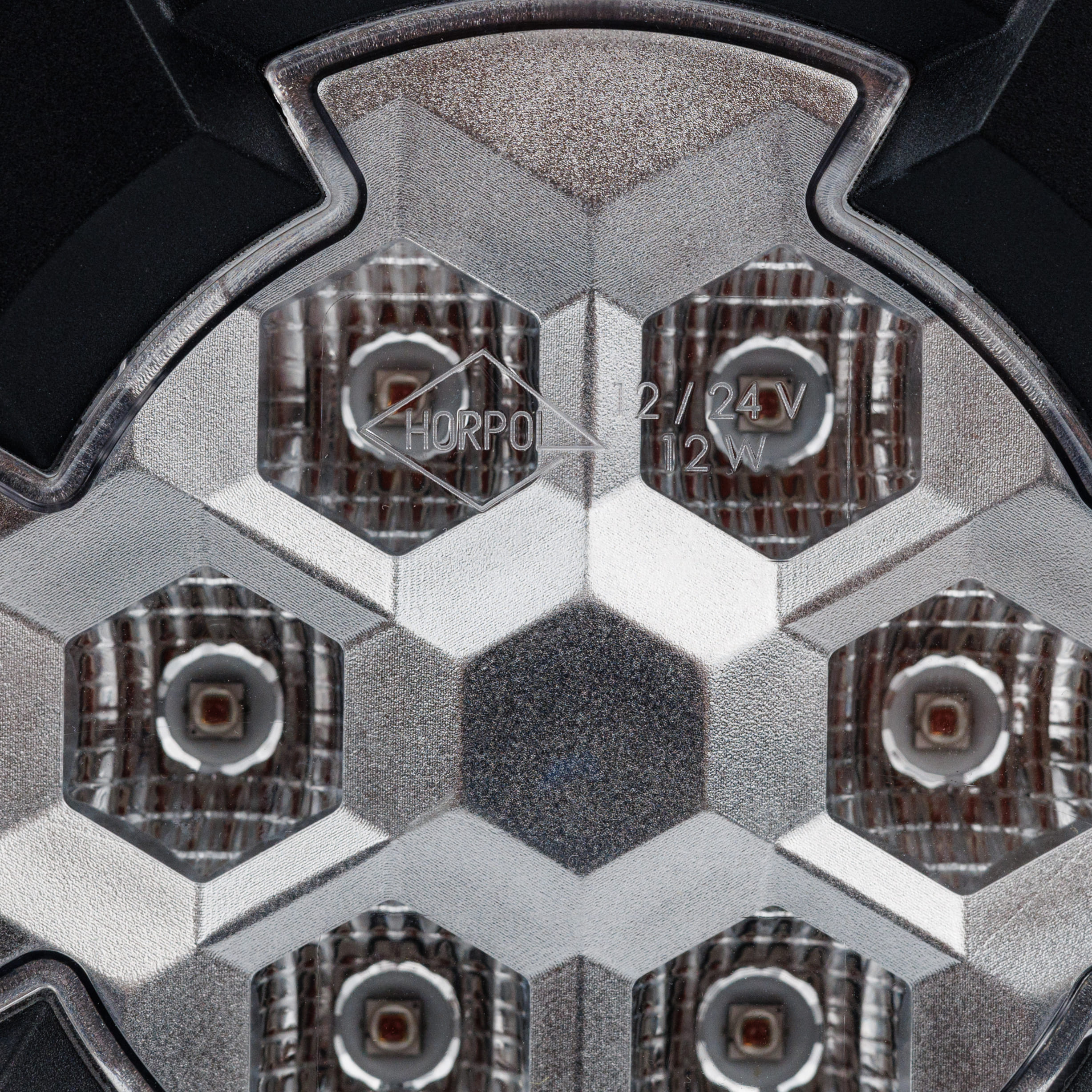 La luz funciona con una amplia gama de tensiones de 12/24 V, tiene una potencia nominal de 12 W y genera un flujo luminoso de 650 lm. Está adaptada al uso en entornos difíciles gracias a su elevado grado de protección IP 68 y la compatibilidad electromagnética EMC.