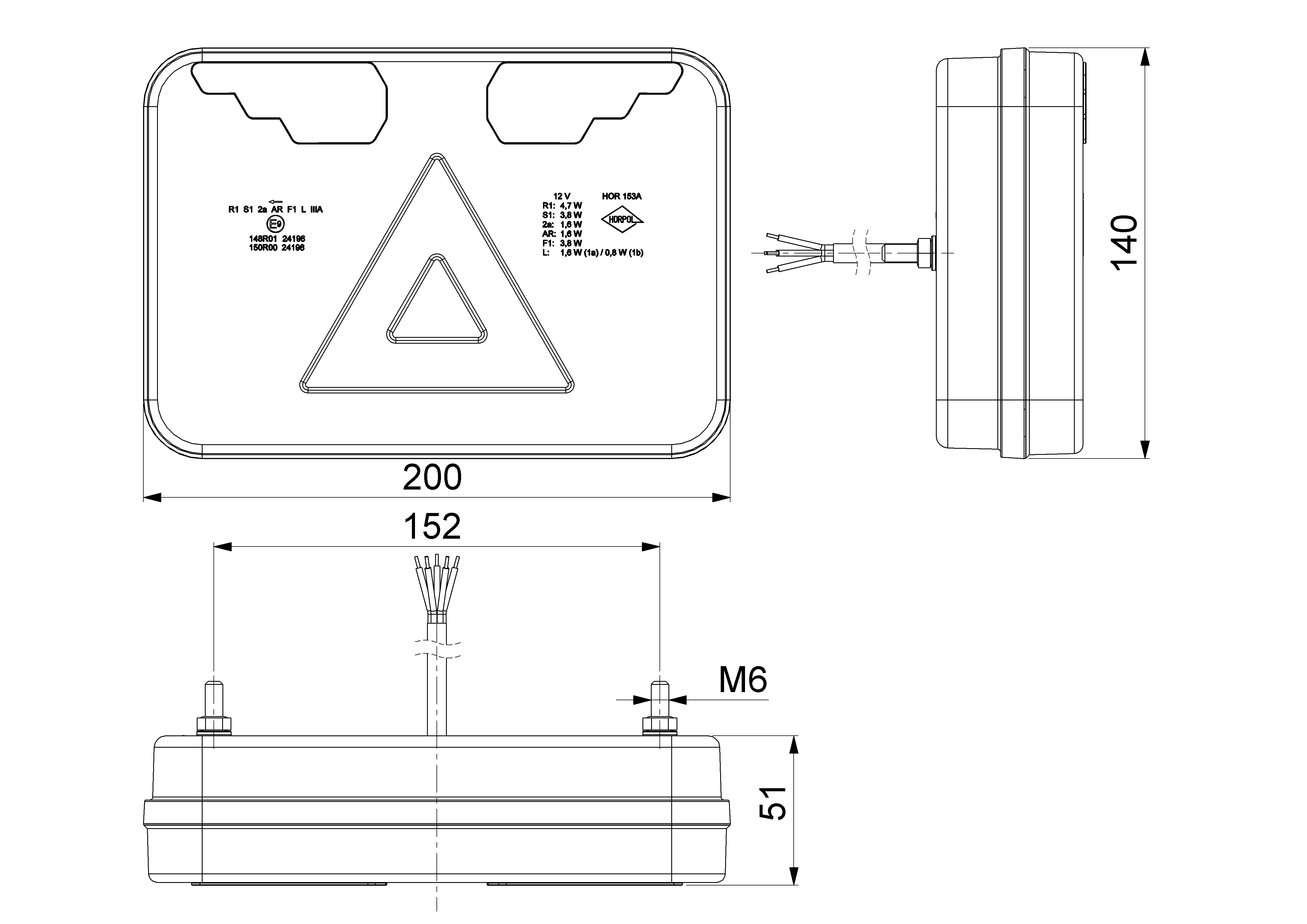 – Iluminación lateral de la matrícula (cable de alimentación separado) – 0,8 W;