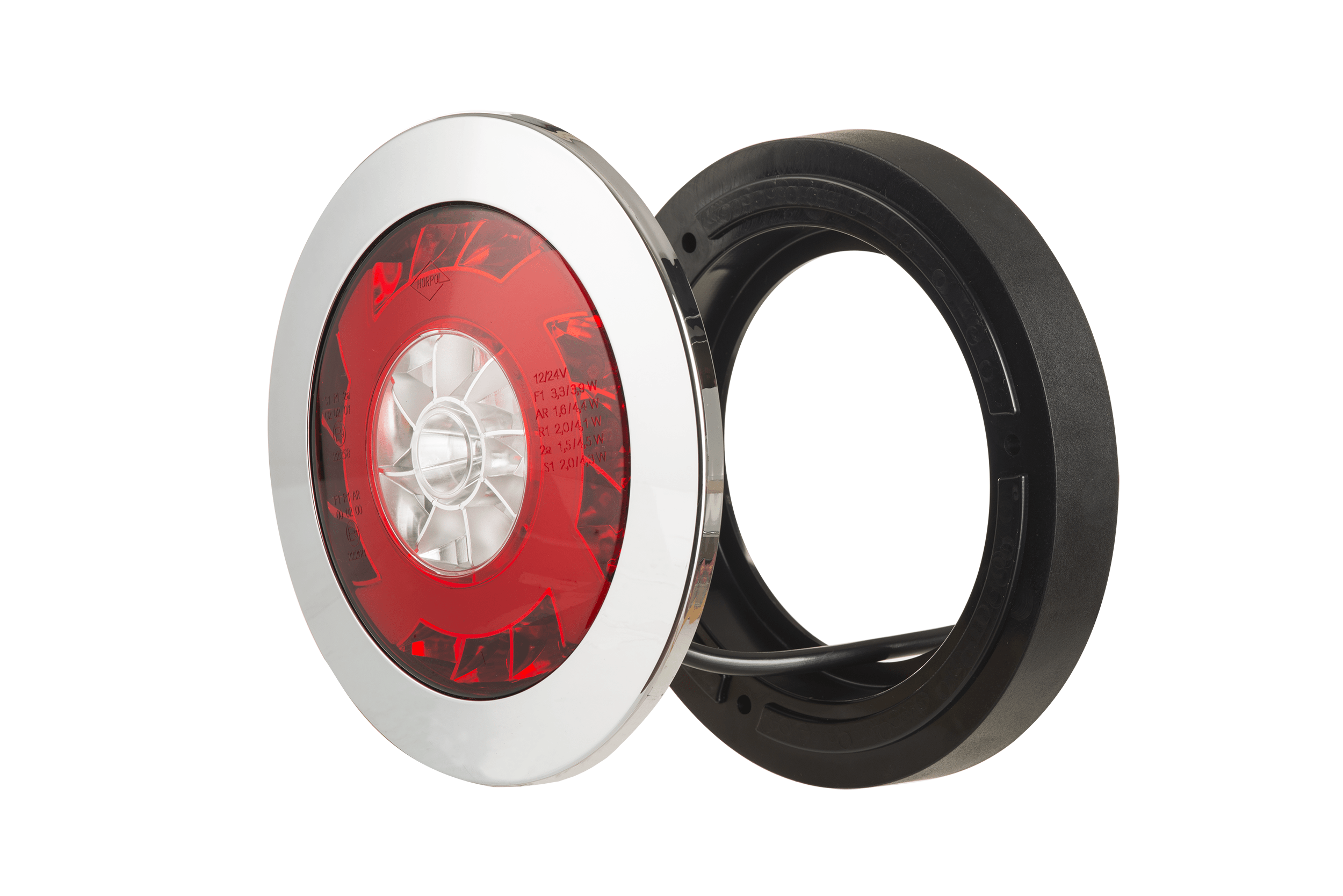 Luz combinada trasera LZD 2425, de diodos luminosos 12/24 V con brida y anillo metalizado.