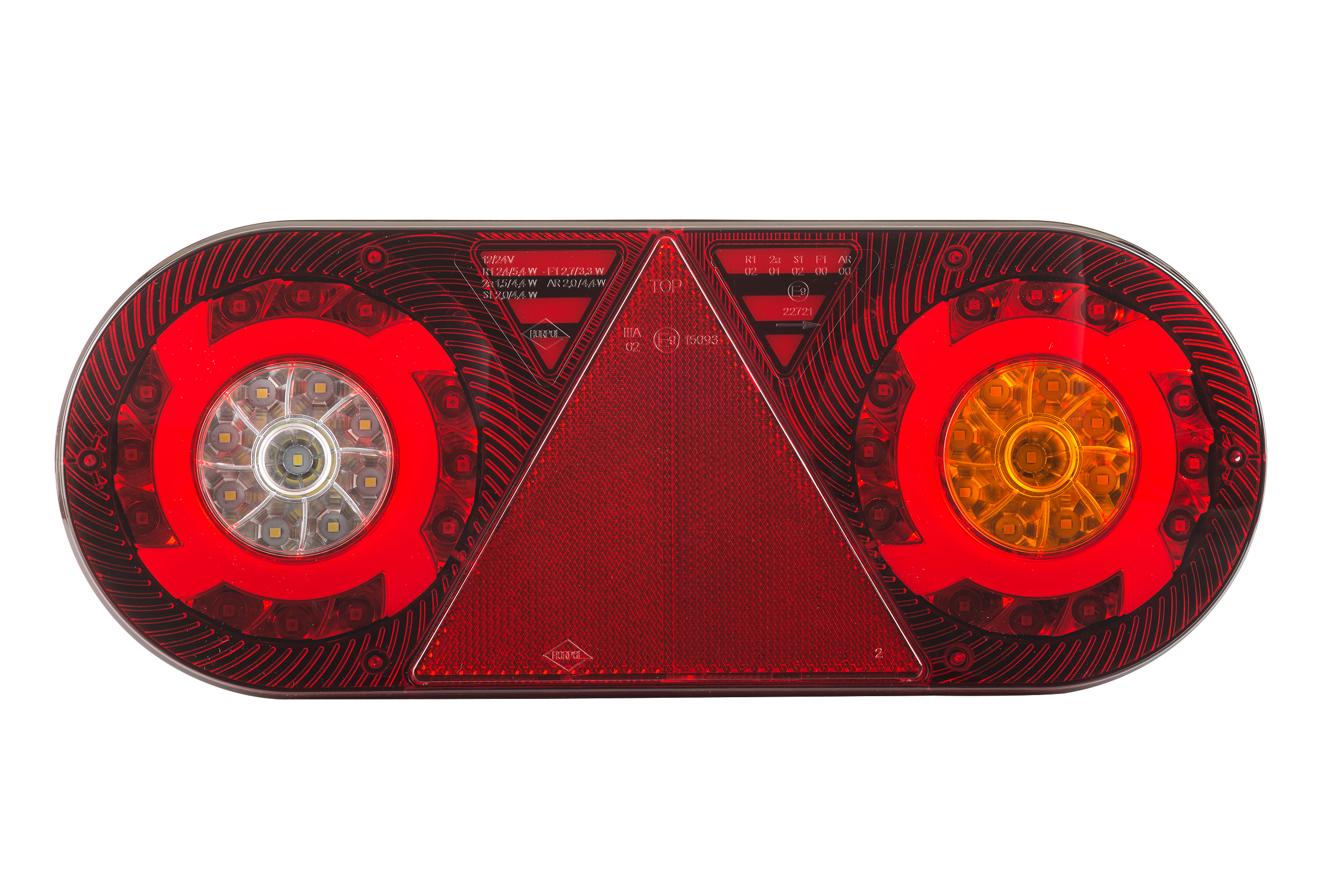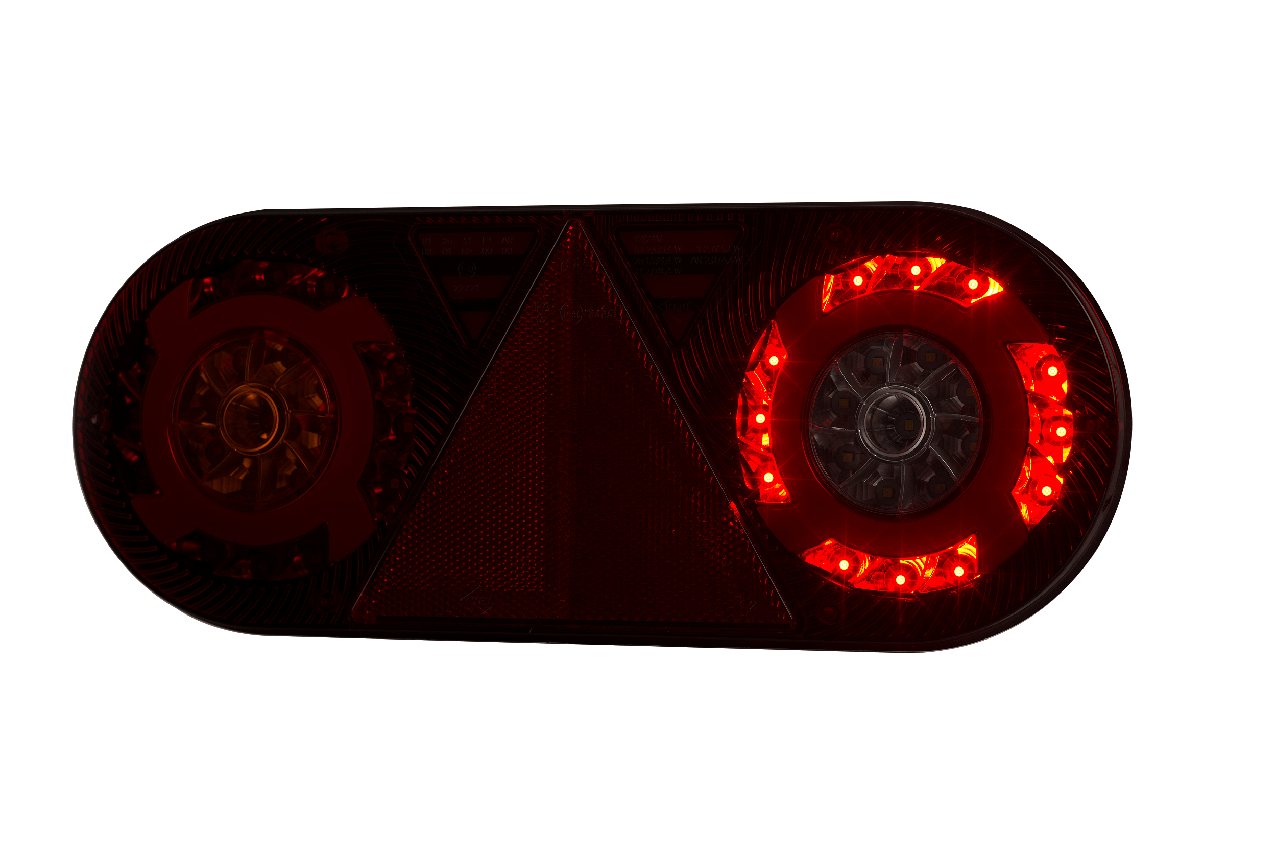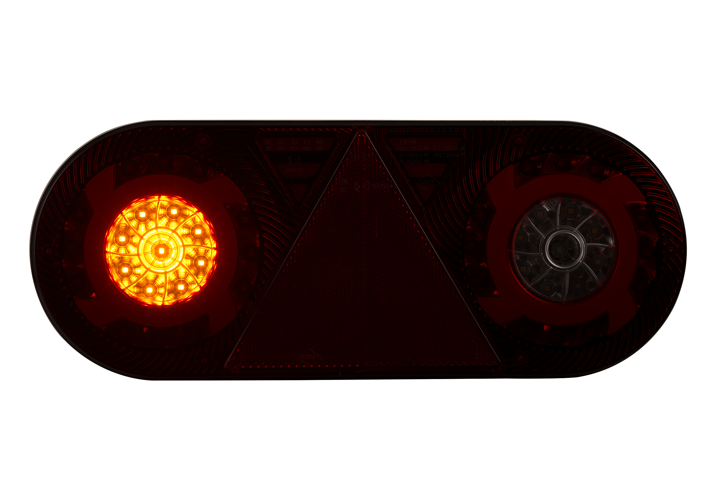 Stella (LZD 2551/derecha) es una luz combinada trasera de diodos LED de 6 funciones. Su forma singular y diseño innovador confieren a los vehículos un carácter y estilo únicos. La luz Stella dispone de una luz de posición NEON y un reflejo triangular. La instalamos en remolques y semirremolques.