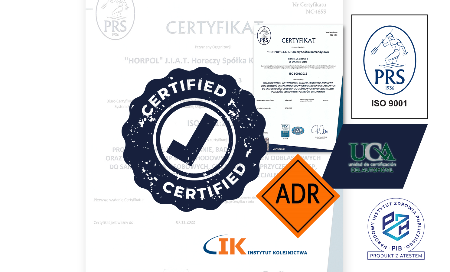 HORPOL A. Horeczy Sp. k. es una empresa profesional especializada en la producción, inspección y venta de lámparas para automóviles y dispositivos reflectantes para todo tipo de vehículos de motor. En nuestras operaciones cotidianas, utilizamos un moderno sistema de gestión de la calidad conforme a la norma ISO 9001:2015, esforzándonos al máximo por mejorarlo continuamente. Como resultado, suministramos al mercado productos de alta calidad que cumplen las expectativas de los consumidores y la normativa legal.